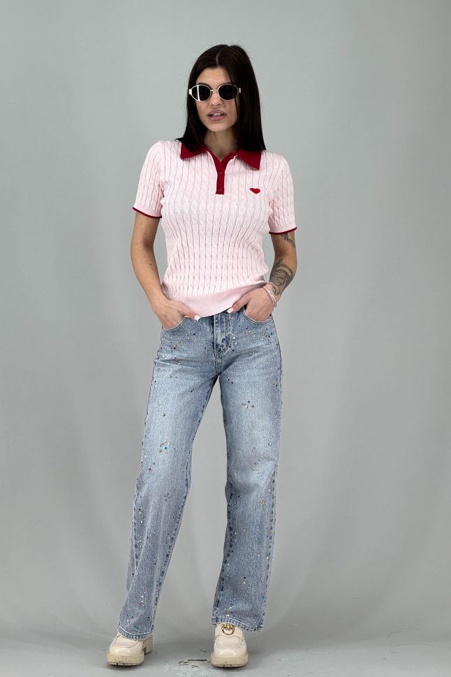 Дамски пуловер фино плетиво в розово